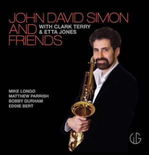 John David Simon has long been recognized by his peers as the consummate jazz artist, a big toned tenor saxophonist with a comprehensive knowledge of his instrument’s history and its masters and a wide range of experience with some of the music’s most important players, from Don Patterson and Charles Earland to Illinois Jacquet and Clark Terry. On this new cd of never previously released material, Simon surrounds himself with many of the greats with whom he’s shared bandstands. Clark Terry, who calls his friend Simon “Old Faithful” notes, “He knows how to swing … kind of reminds me of a player that has been around for a long time … like a lot of those cats that’s been around – Don Byas … Ben Webster … Hawkins and all them.” On John David Simon And Friends With Clark Terry & Etta Jones the young veteran saxist swings mightily through a satisfying program of classic material and originals by himself and Terry, backed by the solid rhythm section of Mike Longo, Matthew Parrish and the great Bobby Durham, joined on various tracks by special guests Terry, Jones and Eddie Bert.
